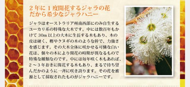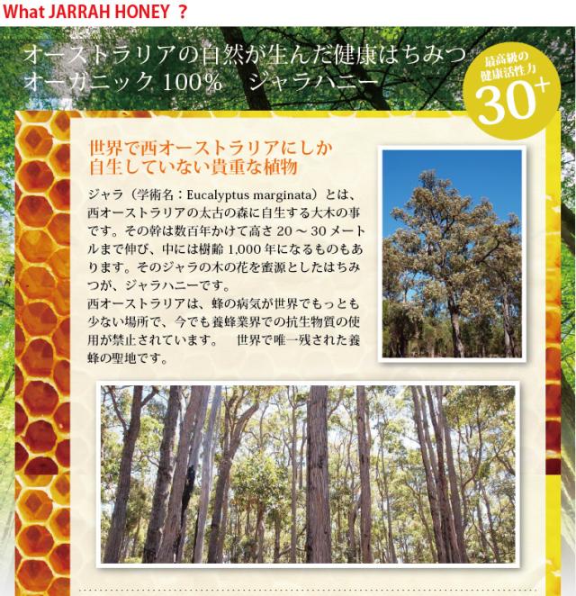 クリーンで安心・安全の西オーストラリアの太古の森に自生する「ジャラ(ユーカリ属)」という木の花の恵み。まさしくジャラハニーは天然のサプリメント!貴重な森の恵みを、是非あなたの健康維持にお役立てください。