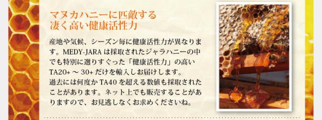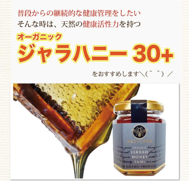 マヌカハニーと同様の効果を持つ健康はちみつ30+。深いコクある味わいと世界最高級の健康活性力、この数値はジャラハニーだけ!