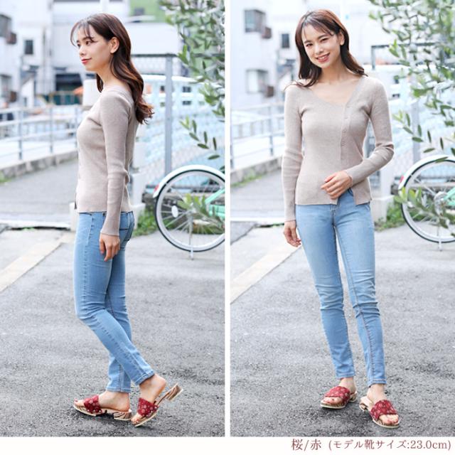 | 素足でも靴下でも快適に履きやすいバンドタイプ。 玄関先や軒先、トイレなど様々な用途で使いやすい♪ 大分県産の日田杉を使用し、日本国内で生産されたものです。 職人の手で一つ一つ丁寧につくられた、品質の良さが感じられる一足です。 ・メンズ(2.ドット、8.小桜)とレディース(9.小桜、10.ドット)は同じ生地を使用しております。 ■ブランド:竹春(TAKEHARU) ■生産地:日本 ■素材:[台]大分県産日田杉、[バンド]綿(日本製プリント柄)、[底ゴム]EVA ■重量(片足):メンズ(約)200〜210g、レディース(約)130〜145g ■実寸サイズ メンズ:(約)縦25.5cm×横8cm かかと3cm レディース:(約)縦23.5cm×横7cm かかと3cm メジャーでの計測となりますので、若干の誤差がある場合がございます。 ■適応サイズ/フリーサイズ メンズ:約25.5-27.0cm レディース:約22.5-24.5cm ※フリーサイズとなりますので、上記は履きやすいサイズとなり、あくまで目安となります。 【長く使うためのコツ】 左右がありませんので、時々左右を履き替えて頂くと長持ちします。 <ご注意> 以下をご確認いただき、予めご了承くださいませ。 国産材(日田杉)を使用し、日本国内で生産されたものです。 ※自然の木目を活かした商品の為、写真と実際お届けする商品には若干見た目が異なる場合がございます。木目はお選び頂けませんのでご了承くださいませ。 ※バンドの部分は大きい柄の布を裁断しておりますので、裁断位置によって柄が変わります。 ・木製の為硬い物にぶつかると、部分的に欠けたり割れる場合がございます。 下駄を履いて走ったり、砕石の砂利の上を歩くと歯が削れて消耗が早くなりますのでご注意下さい。 ・商品は防水されておりません。カビなどの原因となりますので、雨天時はご使用をお控えください。 ★スタッフ試着/レディースサイズ★ 【スタッフD】普段の靴サイズ:23cm(M) 足幅:8.5cm/甲囲:20cm/足長:22cm かかとはみ出さず、足がおさまるサイズ感です。全体的に余裕がありゆったり履けます。 甲周りにもゆとりがあるので、厚手の靴下も着用できそうです。 軽くて足が疲れにくそうです。 ★スタッフ試着/レディースサイズ★ 【スタッフY】普段の靴サイズ:23.5〜24cm かかとが程よく出ますが窮屈さはなく、ストレスなく履けるサイズ感です。 甲高なタイプですが甲周りが痛くなく、重心が中心に乗るように履けます。 土踏まず辺りにカーブしている部分が当たって程よい刺激になります。 ※北海道と沖縄県は、レターパックで発送いたします。[2104-2403r] |
