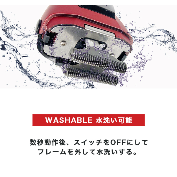キワ剃り刃付きなので、キワやクセひげもしっかり剃れます。 水洗い可能なのでいつでも清潔!!
