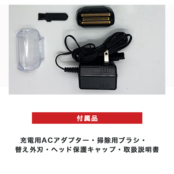 ・付属品:ACアダプタ、掃除用ブラシ、替え外刃、キャップ、取り扱い説明書