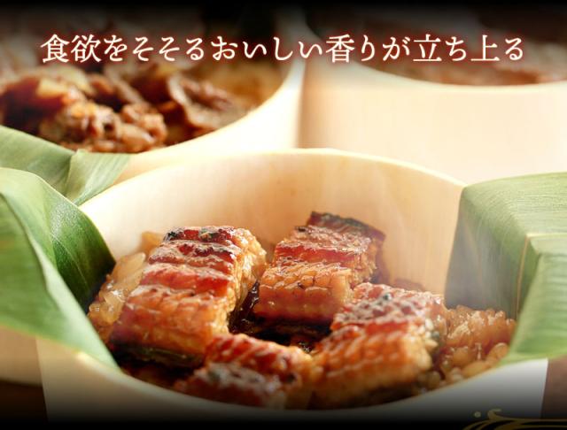 うなぎのタレがしみたおこわ飯に、 ふっくら焼き上げた蒲焼のきざみをのせました。
