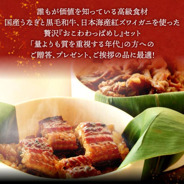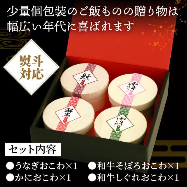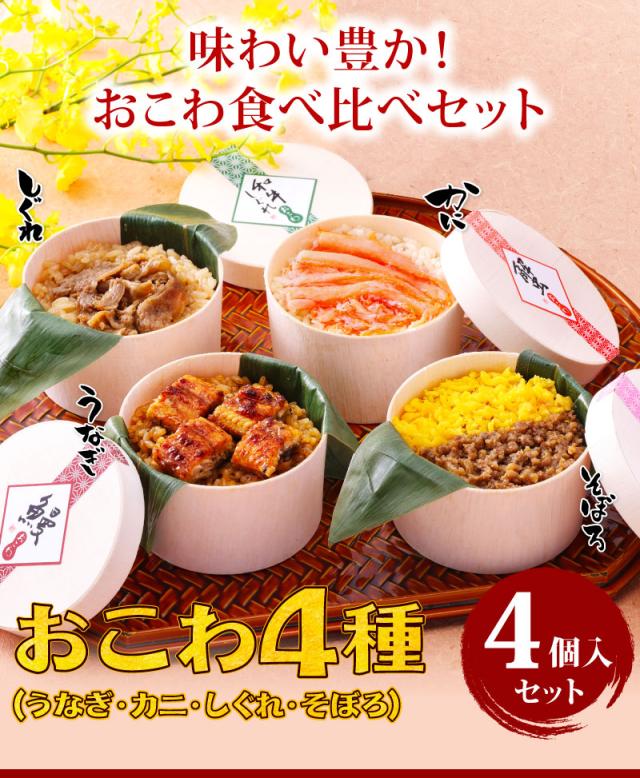 おこわ4種食べ比べセット うなぎ・かに・牛しぐれ・牛そぼろおこわ(4個入り) お歳暮 ギフト 国産 プレゼント お取り寄せ グルメ お祝い 誕生日