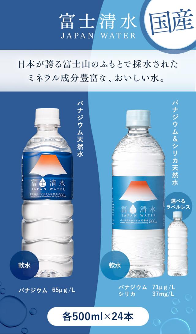 水 500ml 24本 軟水 天然水 富士清水 JAPANWATER 500ml 24本 バナジウム天然水 バナジウム&シリカ天然水 【代引き不可】富士山 シリカ ラベルレス ミツウロコビバレッジ 軟水 保存 備蓄 防災 災害 まとめ買い 富士山 人気