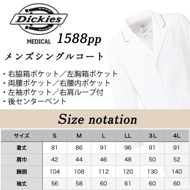 フォーク ドクターコート ディッキーズ 1538PP 白衣 長袖 男性用 医療 医師 病院 医者 歯科医 薬剤師 パルパー制電 FOLK