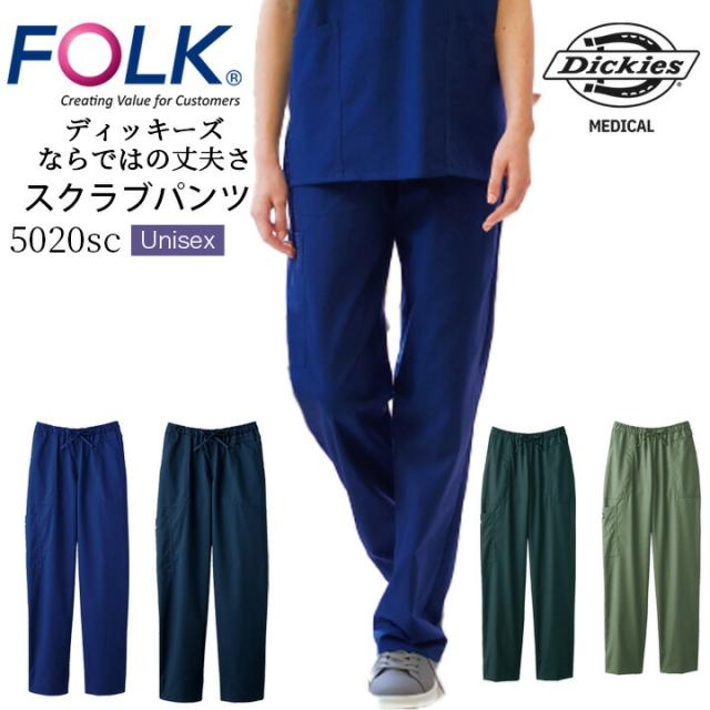 フォーク スクラブパンツ ディッキーズ 5020SC ストレートパンツ 男女兼用 レディース メンズ ストレッチ ユニフォーム 白衣 医療用 病院 クリニック 7045sc 術衣 FOLK Dickies