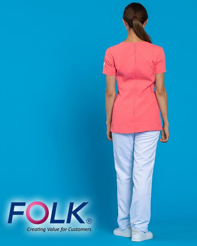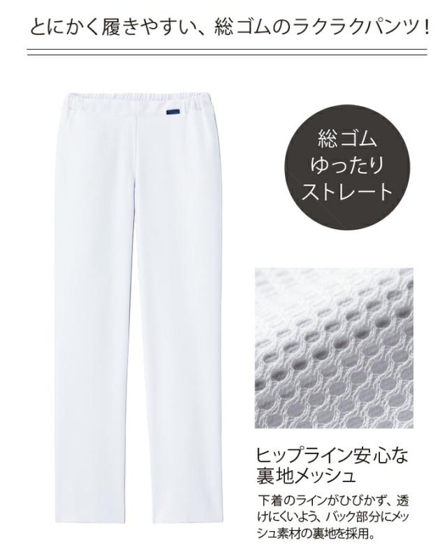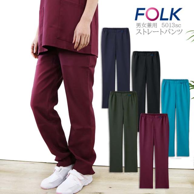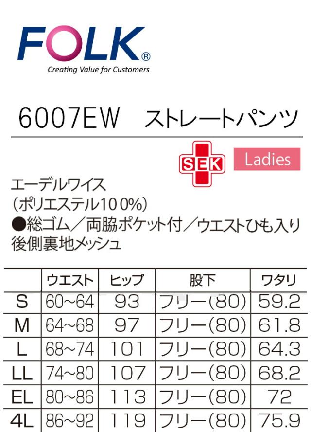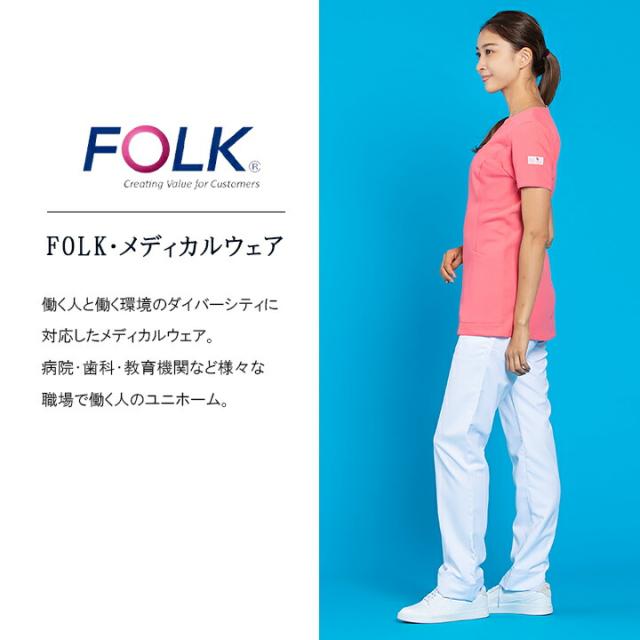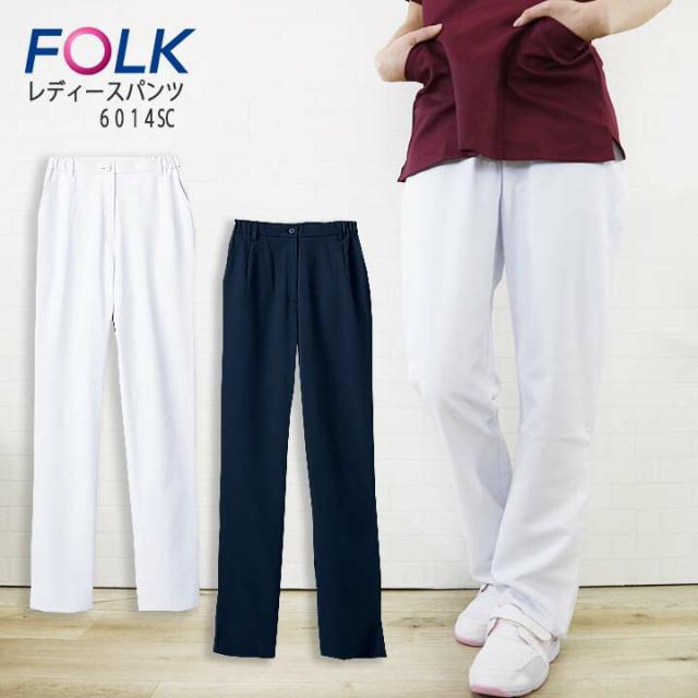 フォーク パンツ 白衣 スクラブパンツ FOLK 6007EW ホワイトパン レディースストレートパンツ ユニフォーム 医師 医療用 看護師 白衣 クリニック エステ服 ウエストヒモ入り 術衣 白パンツ 裏メッシュ 透けにくい