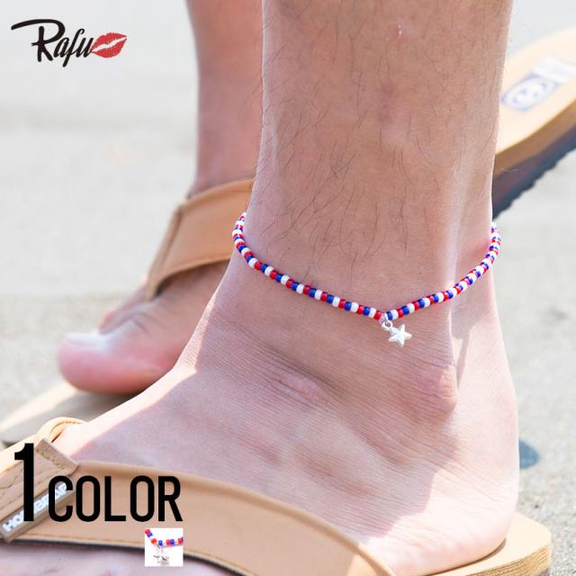 アンクレット メンズ Rafu ラフ スターチャームビーズアンクレット 即日発送 小物 アクセサリー ビーズ チャーム 星 スター サーフ ハワイ リゾート 海 BITTER系 ビター系 プレゼント ギフト [E-4]