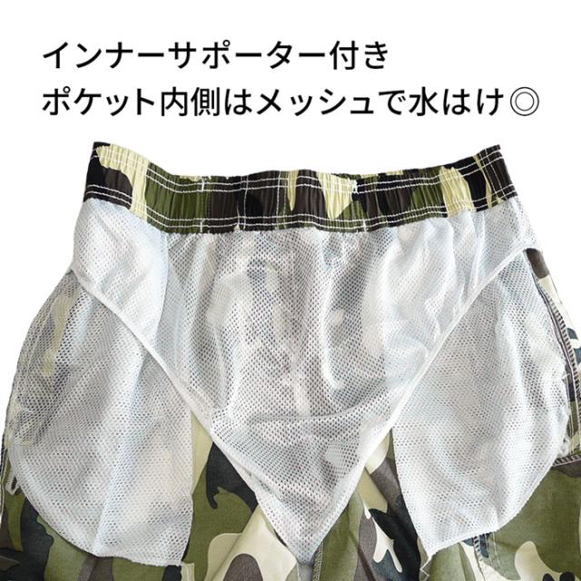 Karly Shop 水着 サーフパンツ 男の子 ボーイズ キッズ ジュニア 子供 男児 海パン 海水パンツ 迷彩柄 インナー付き ポケット付き 膝丈 5部丈 ハーフパンツ スイムウェア カモフラ ミリタリー おしゃれ かっこいい 海水浴 プール 120 130 140 150 160 dm1709