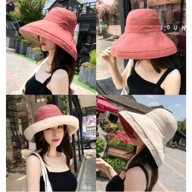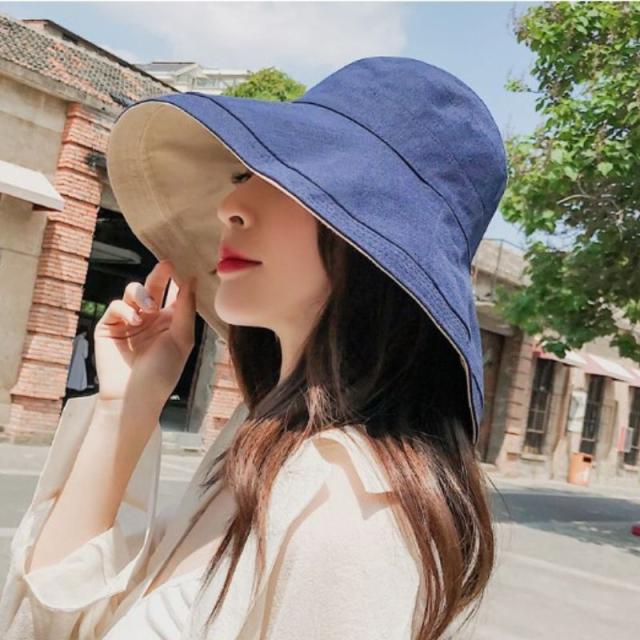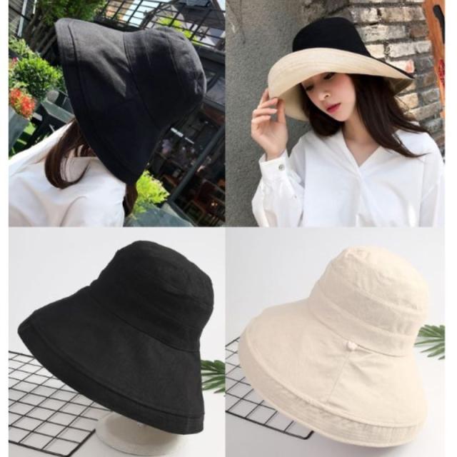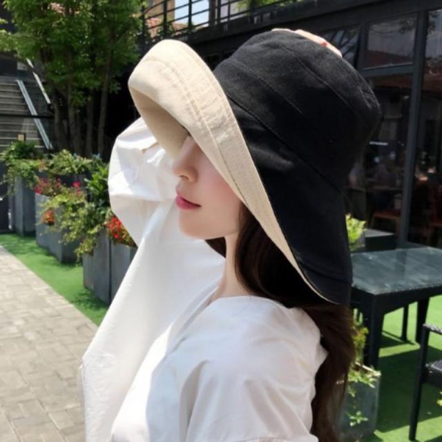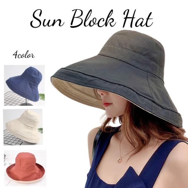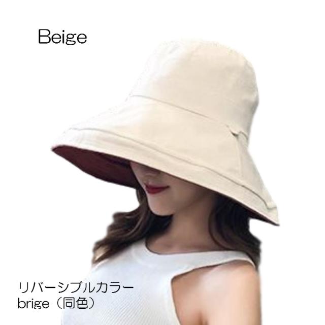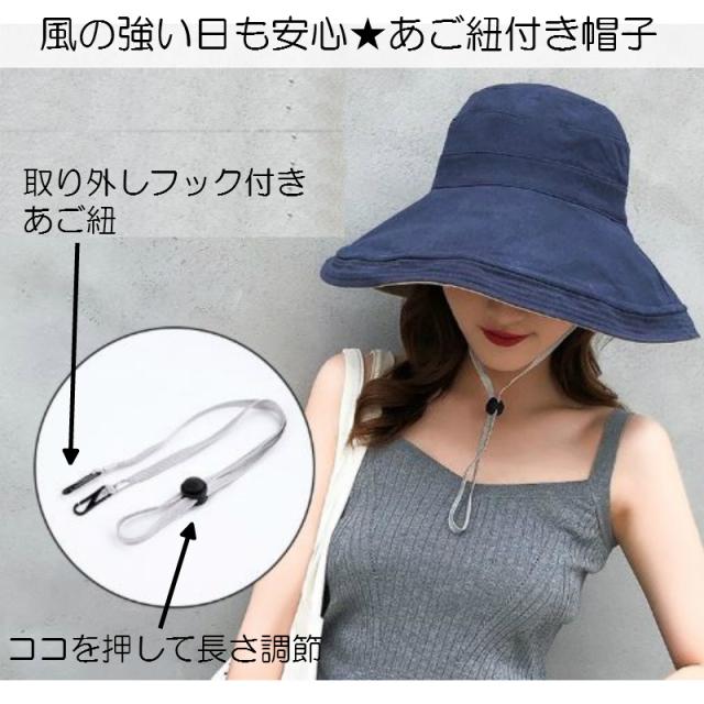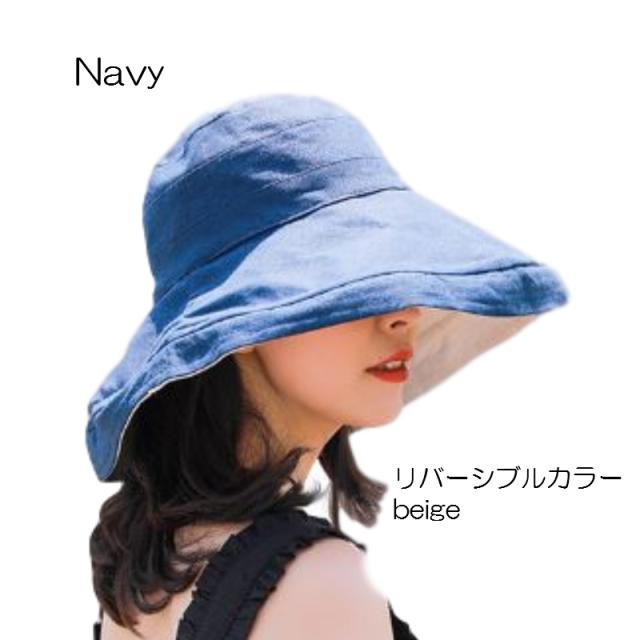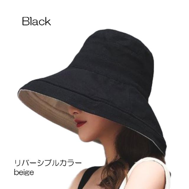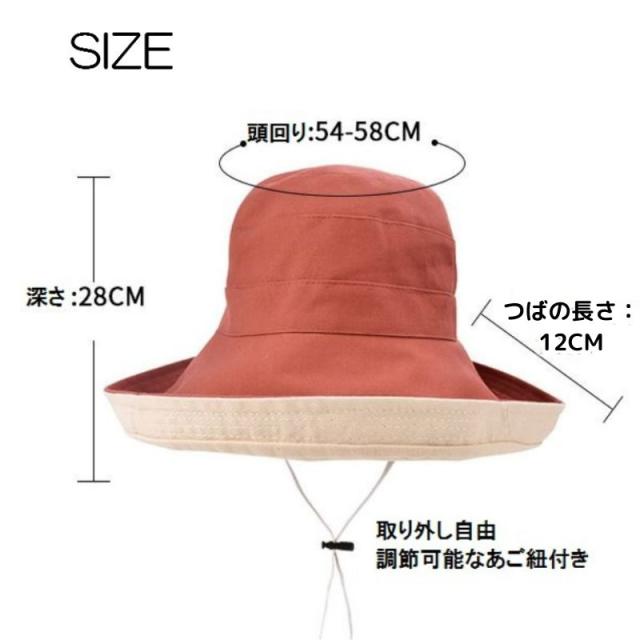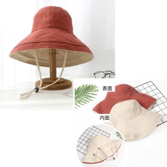 UVカット 日よけ帽子 大きめハット 紫外線カット 取り外し紐付き 折り畳める 帽子 リバーシブル 日焼け予防 レディース つば広 ハット 黒 ネイビー ベージュ レンガ色 ガーデニング 農作業