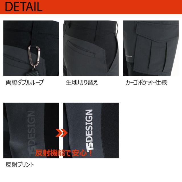 カーゴパンツ TSデザイン 846045 メンズ ショートパンツ 超軽量 ストレッチ 吸汗速乾 高強度 通気性 反射プリント 形状安定 春夏 作業服 作業着 藤和 TS-DESIGN