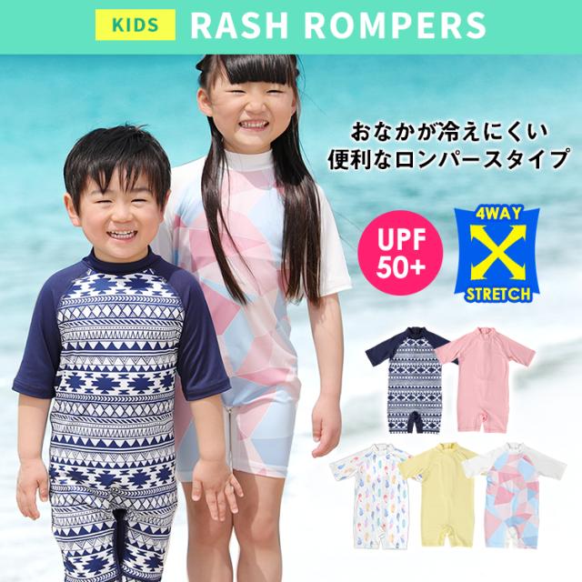ラッシュガード キッズ ラッシュ ロンパース オールインワン 半袖 ベビー 男子 女子 トドラー