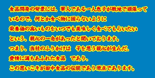 - いつもは、ノリタマを食べているのですが、テレビで元祖ふりかけというのを見て 購入しました。塩分が気になる年代なので、ちょっとしょっぱいように、思いました??栄養面では、とても良さそうに思います??