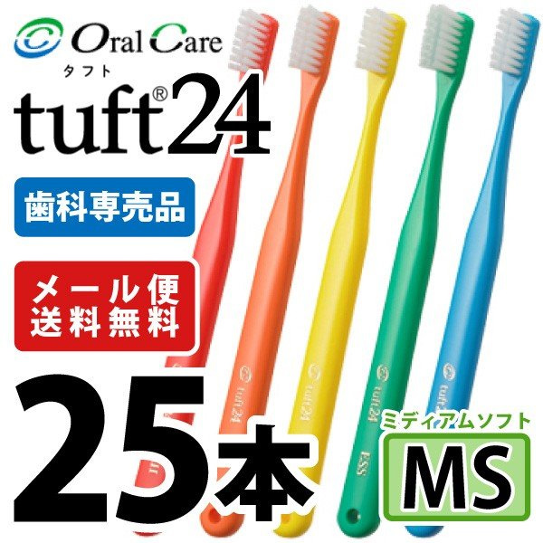 【メール便選択で送料無料】歯ブラシ タフト24 オーラルケア MS(ミディアムソフト)カラーアソート 25本 ※ホワイトは含まれません