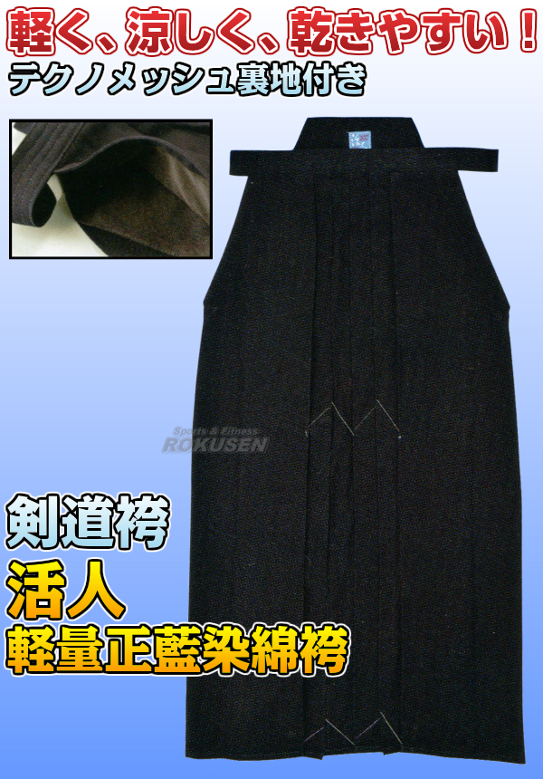 松勘 剣道袴 活人 軽量正藍染綿袴 メッシュ裏地付き 袴単品 23号/24号/25号/25.5号/26号/26.5号/27号/28号/29号 剣道着
