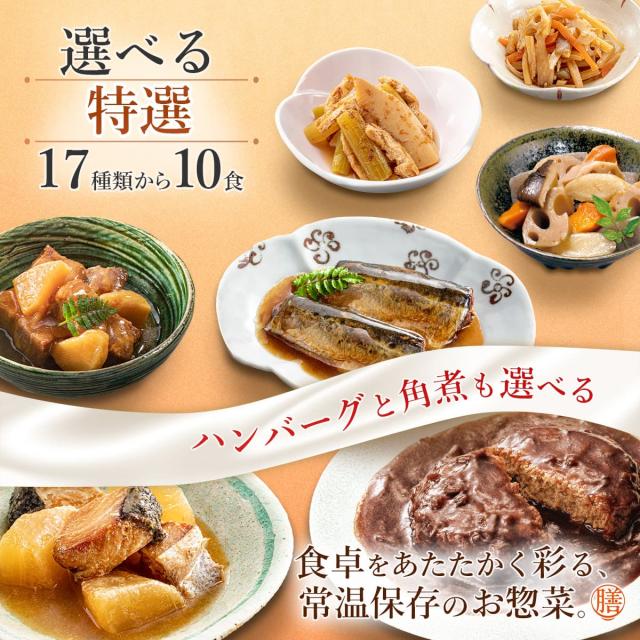 お歳暮 レトルト食品 常温 惣菜 おかず 詰め合わせ 膳 特選 17種から 選べる 10食 セット 【 送料無料 沖縄以外】 国分 tabete レトルト お惣菜 和食 洋食 肉 魚 野菜 ハンバーグ 肉じゃが レンジ 湯煎 備蓄 保存食 2025 お年賀 帰省 ギフト