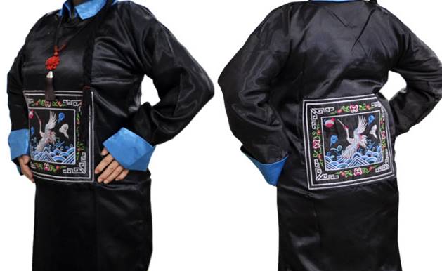服の表裏両方に鶴の刺繍が縫い付けております。
