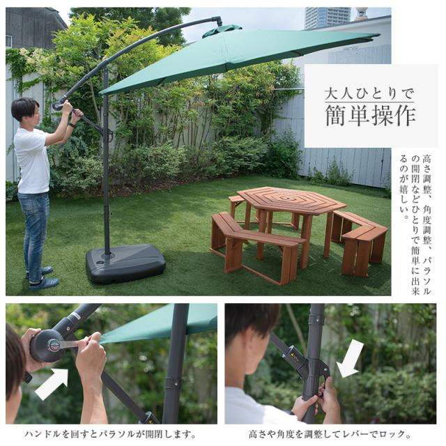 ガーデンパラソル 大型 ハンキング ベース付き 大きい 折りたたみ おすすめ 安い お洒落 貯水型ベース アウトドア 日よけ ベランダ 庭 吊り下げ型 キャンプ UVカット 防水 紫外線
