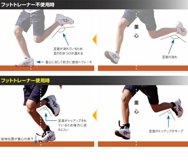 足首を90度前後に半固定することで足の接地時間が短縮され、「地面反力」をピッチ増加とストライド増大に生かすことができるフットトレーナーです。