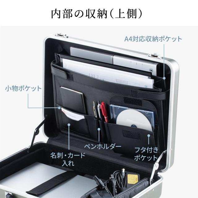 アタッシュケース 頑丈なアルミ製 A4書類 ノートパソコン収納 [200-BAG155]