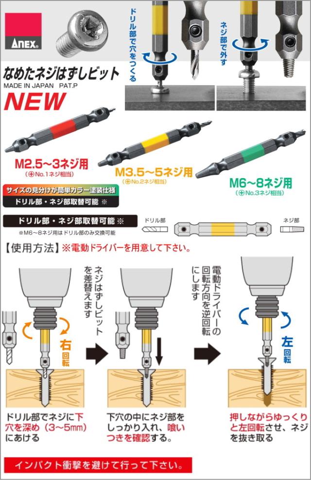 ANEX なめたネジはずしビット 1pc (ANH-265) 日本製 アネックス DIY 工具 作業工具 作業用品