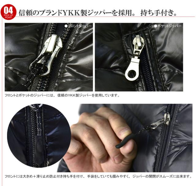 ・ジッパー類は全てYKK社製。グローブを装着していても持ちやすい引手あり。
