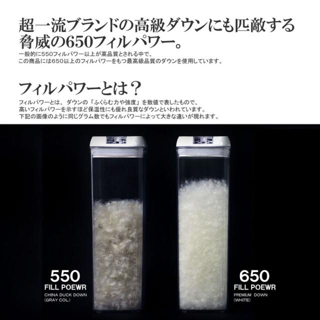 このダウンが示す650フィルパワーは、超一流ブランドの高級ダウンにも匹敵するトップクラス!
