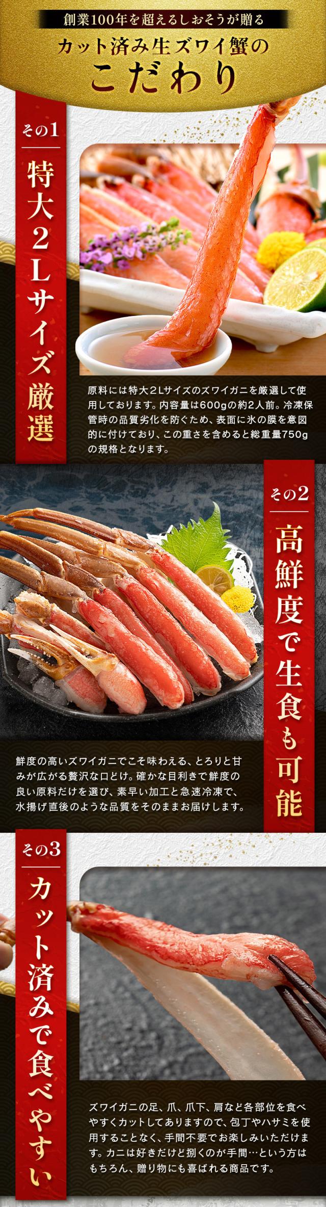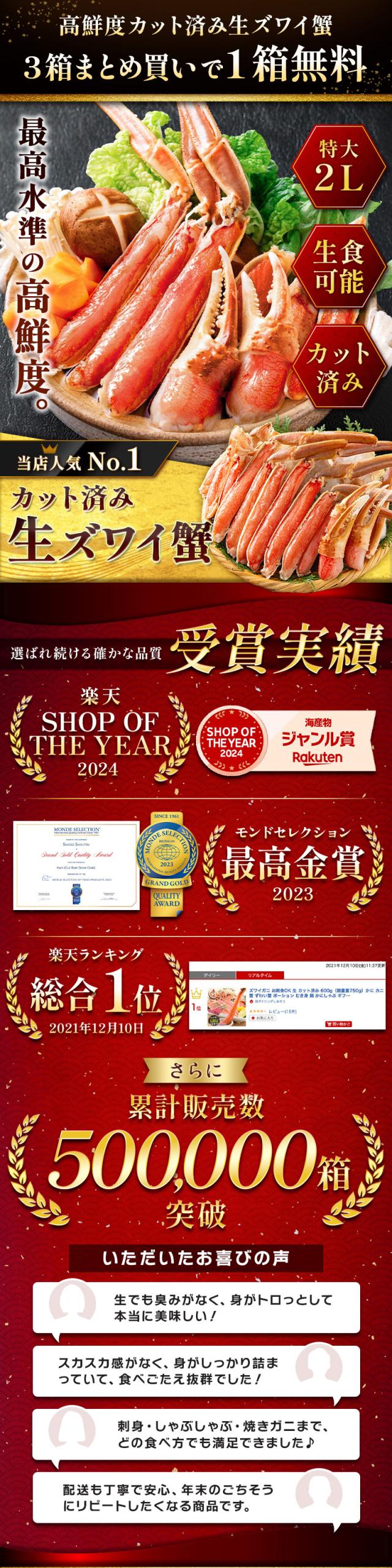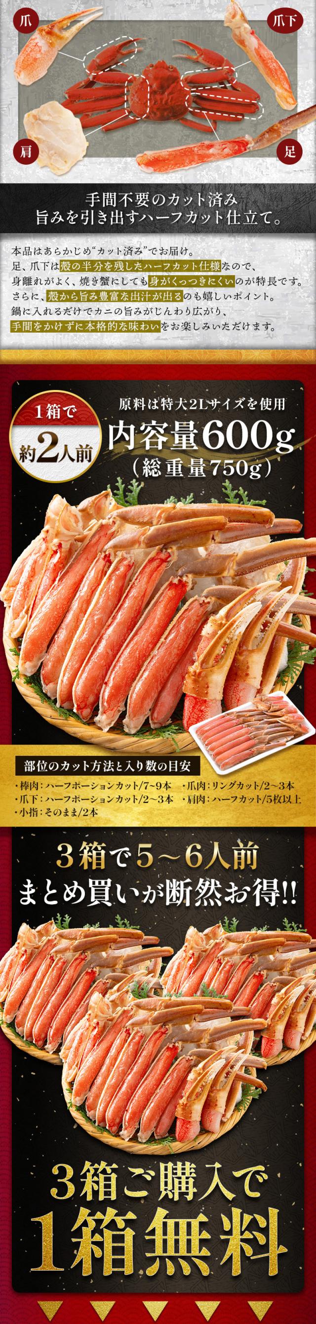 3箱で1箱無料!かに カニ 蟹 ズワイガニ ポーション お刺身OK 生 カット済み 600g (総重量750g) ずわい蟹 鍋 ハーフポーション 贈り物 kst23_d kst23_c ギフト プレゼント お歳暮