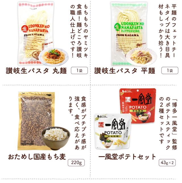 ⇒讃岐生パスタ丸麺 200g、平麺 200g【通常価格各275円相当】