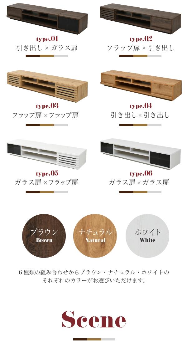 ワイド テレビボード ローボード 50インチ 幅180 高さ32 奥行40 大型テレビ台 テレビラック ガラス扉 引き出し 格子 フラップ扉 配線収納 6デザイン×3カラー=18種類から選べるワイドなテレビ台