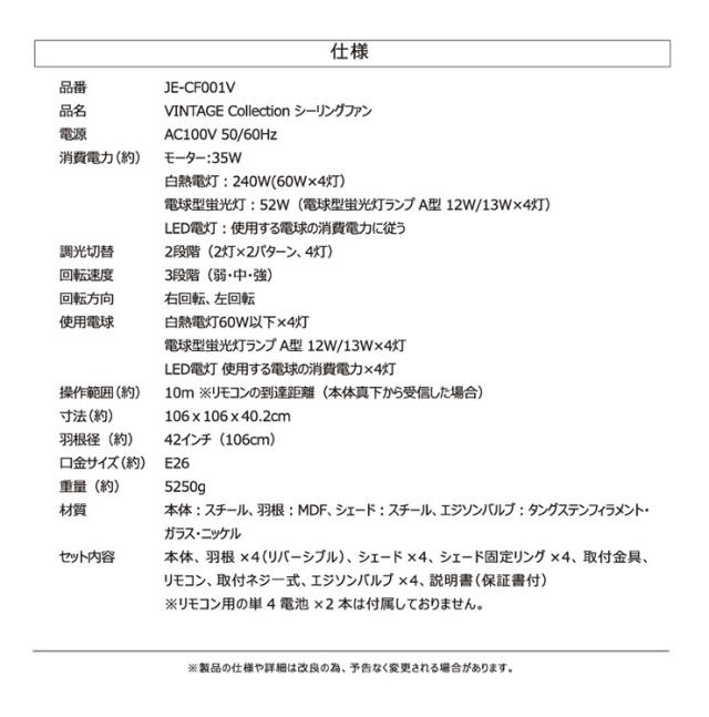 消費電力(約):モーター:35W、白熱電灯:240W(60W×4灯)、放電灯:52W