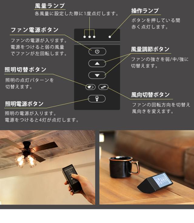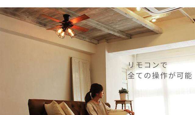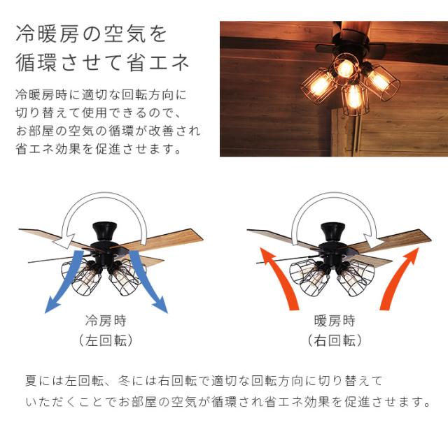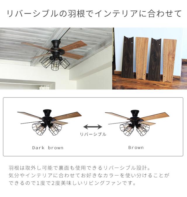 シーリングファンライト LED対応 4灯タイプ おしゃれ リビング シーリングライト 照明器具 リバーシブル羽根のライト搭載 カフェ風 シーリングファン