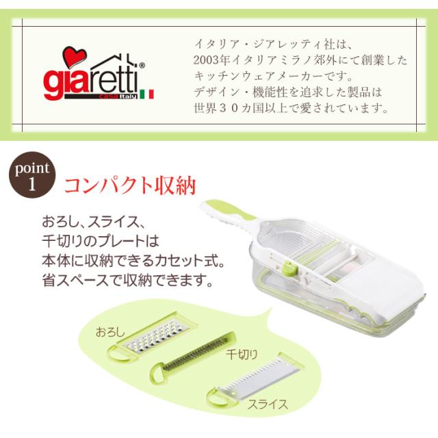 スライサー セット 野菜 安全ホルダー 収納 コンパクト giaretti ジアレッティ グリーン 送料無料