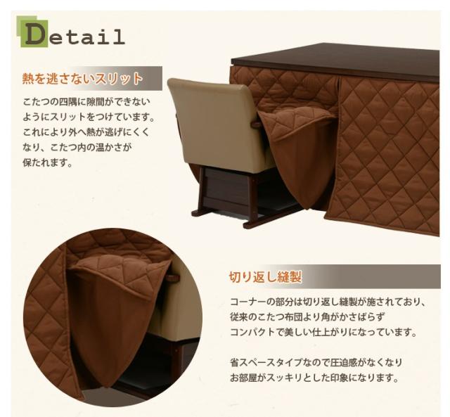肌触りのよいピーチスキンの生地を使用したダイニングこたつ用掛布団。