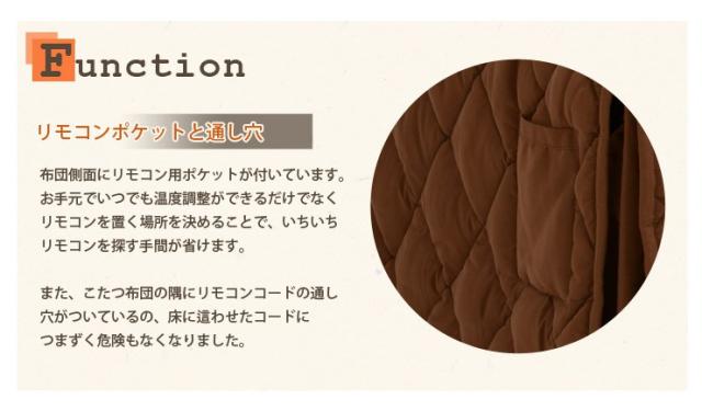 肌触りのよいピーチスキンの生地を使用したダイニングこたつ用掛布団。