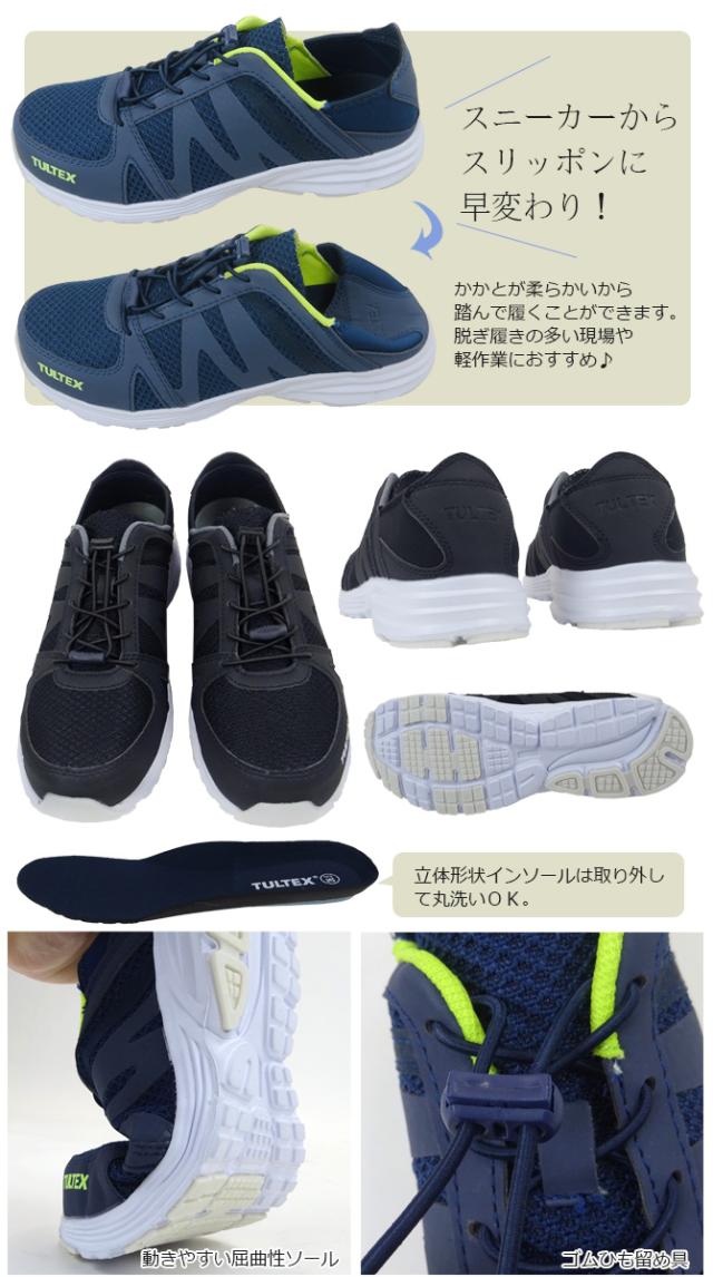 安全靴 スニーカー かかと踏み スリッポン TULTEX タルテックス AZ-51655 ローカット アイトス メンズ レディース ゴム靴紐 軽量 踵踏み メッシュ