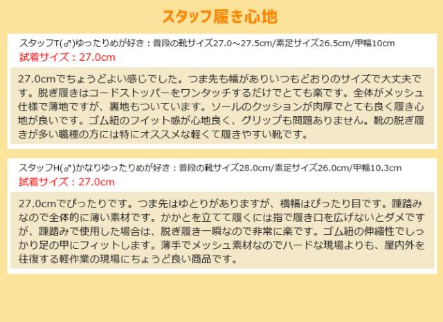 - 3年前に足を骨折して以後、室内・室外ともに安全靴を履くように。見た目もスニーカータイプで良い感じです。スリッポンタイプは靴を履いたり脱いだりする機会が多い室内で使用しています。とても重宝しています。 ...