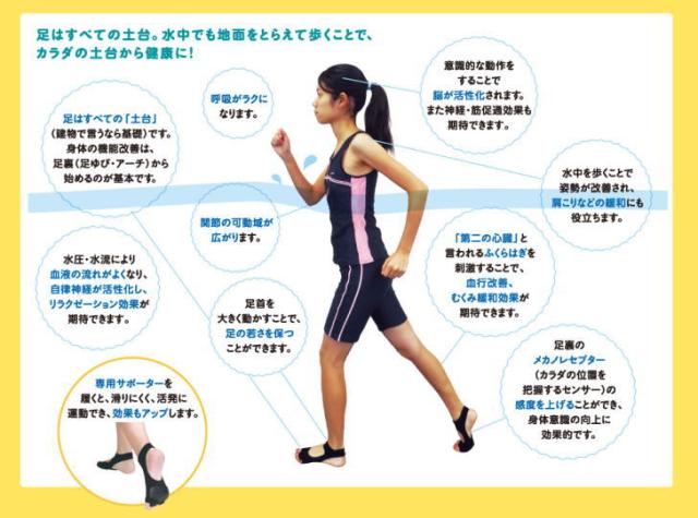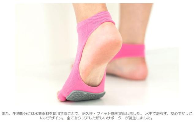 素足感覚を実現する軽さと、動きを軽くする水中歩行に適したサポータです。