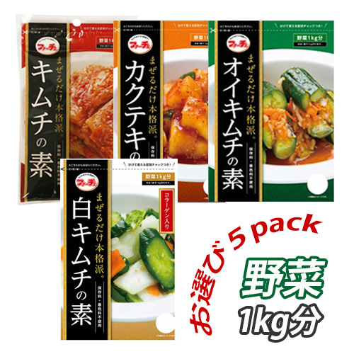 送料無料 ファーチェ 本格キムチの素お選び5点セット『カクテキの素 本格キムチの素 オイキムチの素 白キムチの素』花菜 ファーチェ まぜるだけ 下漬・塩漬が不要です!
