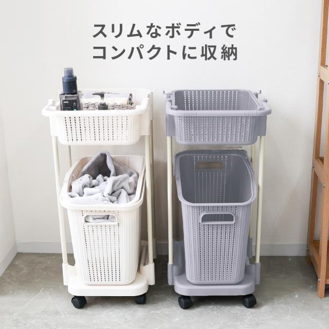 ランドリーバスケット 2段 スリム ランドリー キャスター付き バスケット カゴ ランドリーラック ランドリーボックス キャスター 洗濯 洗濯カゴ 洗濯物入れ 大容量 脱衣カゴ 風呂 脱衣 収納 収納バスケット 送料無料