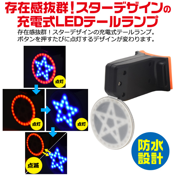 ■存在感抜群!スターデザインの充電式LEDテールランプ!