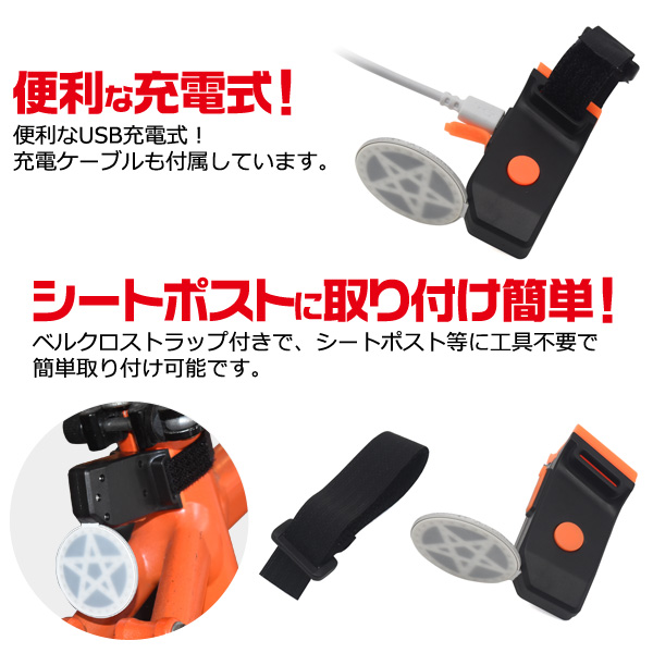 テールライト 自転車用 LEDライト テールランプ スターデザイン 充電式 自転車 自転車用ライト 工具不要 簡単取付 リアライト 点灯 点滅 自転車テールライト テールランプ 自転車ライト サイクリング クロスバイク ロードバイク マウンテンバイク 自転車通学 通学 通勤