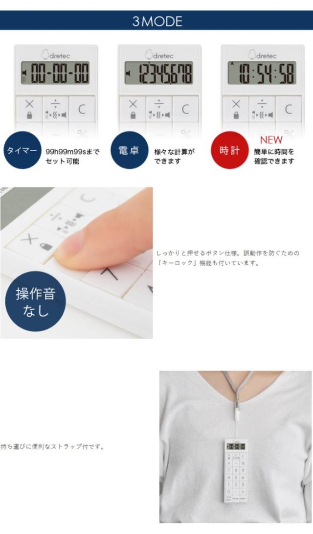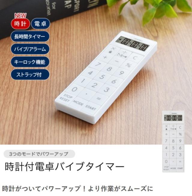 電卓付きタイマー 時計付バイブタイマー 計算機 アラーム音 振動 スリム ストラップ マグネット