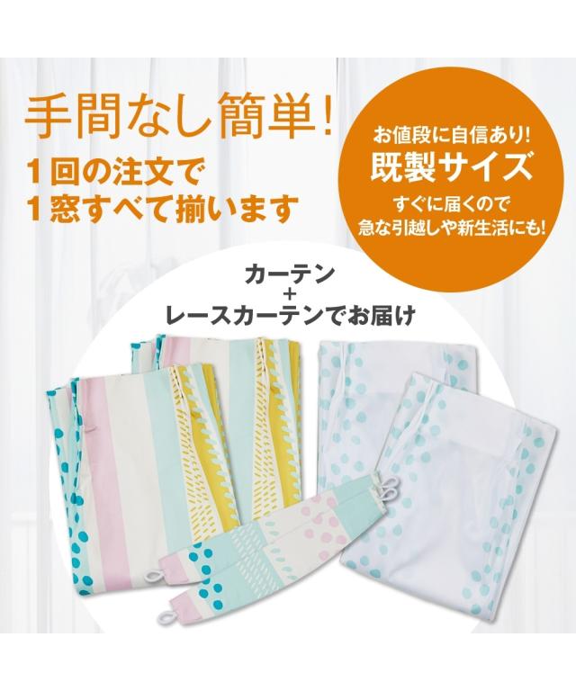 [keyword] 家具 収納 インテリア 遮光 遮熱 防音 遮音 外から見えにくい 遮像 UVカット 夏 外 おでかけ イベント 肌 レジャー ストライプ 柄 かわいい おしゃれ 幾何学柄 ポップ カジュアル 一人暮らし 大学生 社会人 ワンルーム 1K 1DK 新生活 [comment] カーテンには遮熱・防音・遮光の機能を、レースカーテンには遮熱と見えにくい機能を持たせた多機能セット。
