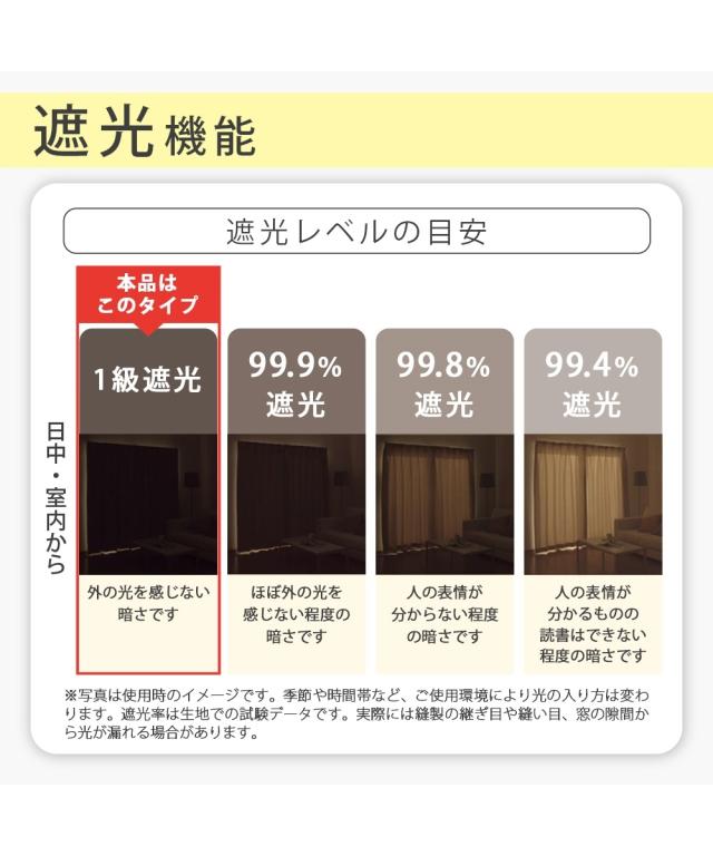 ●セット内容:カーテン2枚・レースカーテン2枚の計4枚セット カーテン●品質:ポリエステル100%(裏面=アクリル樹脂コーティング)●遮光率=99.99%、断熱効果率=36%、レースカーテン●品質:ポリエステル100% ●紫外線カット率=94%、断熱効果率=16% ※紫外線カット率・断熱効果率は第三者機関にて試験的に測定した数値です。ご利用になる環境によって効果は異なります。●アジャスターフック付 ●カーテンと共生地のタッセル付