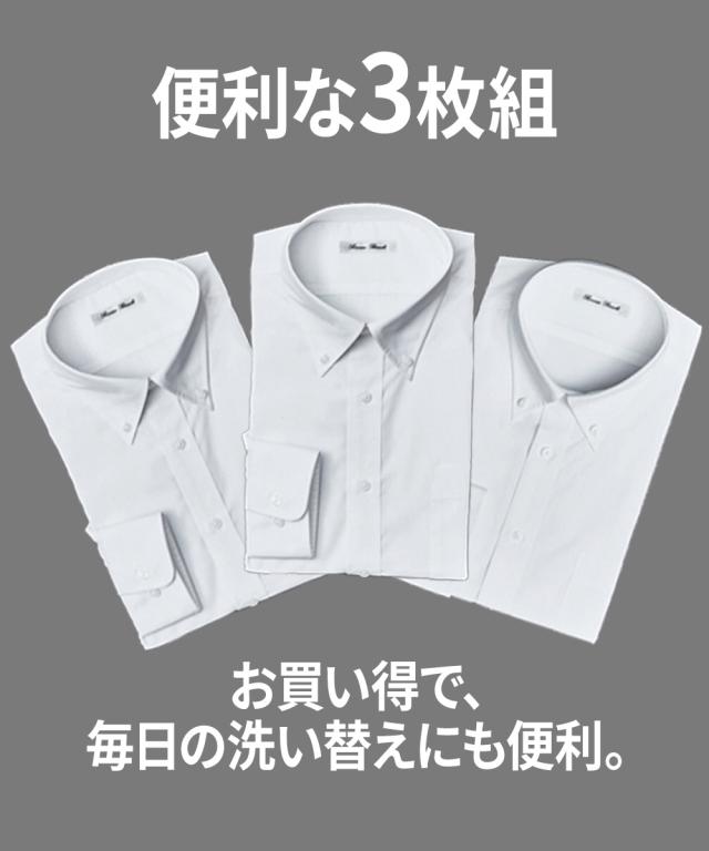 抗菌防臭・形態安定長袖ワイシャツ3枚組(ボタンダウン) 大きいサイズメンズ