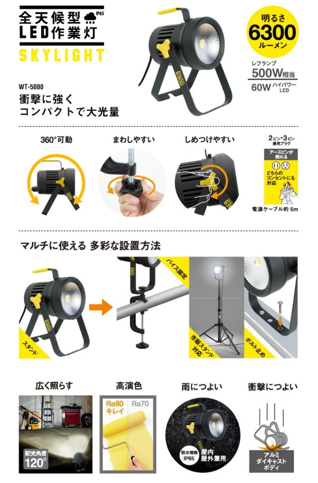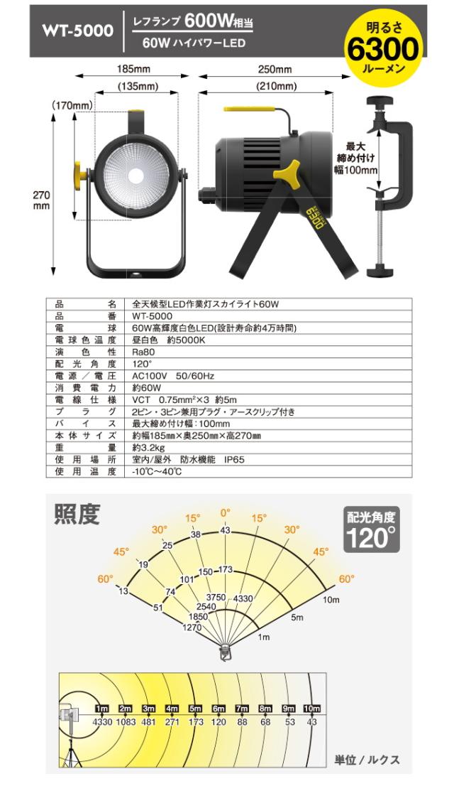 全天候型 LED投光器 スカイライト 60W (WT-5000) 送料無料 屋内 屋外 アウトドア 作業灯 投光器 LED ライト 照明