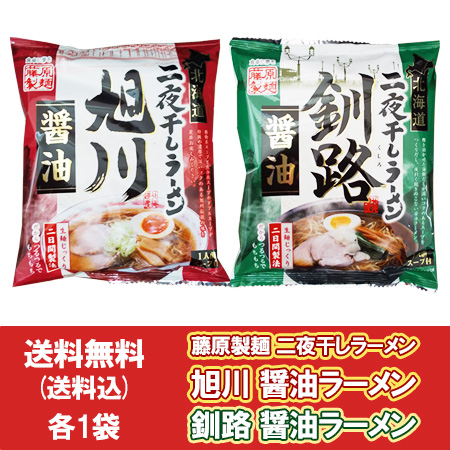 旭川ラーメン 醤油 袋麺 釧路ラーメン 正油 送料無料 旭川醤油ラーメン / 釧路醤油ラーメン 乾麺 各1袋 醤油ラーメン インスタント ラーメン あさひかわ らーめん くしろ 麺類 ラーメン