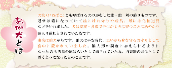 お伽犬飾り 敷物 雛祭り 桃の節句 初節句 お祝い 贈り物 犬筥 W12×D7×H10cm 1体 35×12cm お伽犬飾り 敷物 雛祭り 桃の節句 初節句 お祝い 贈り物 犬筥
