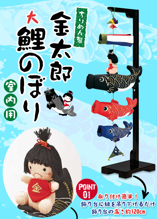 鯉のぼり 室内 ちりめん 室内用こいのぼり 室内飾り 端午の節句 お祝い 子供の日 金太郎(大)高さ120 吊るし 飾り 鯉のぼり 室内用 こいのぼり